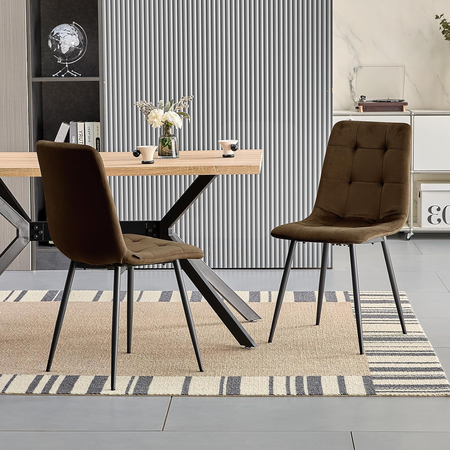 [Sturdy and Durable]: The metal frame makes the dining chair sturdy and durable, and can support up to 120 kg. The black lacquered metal feet have 4 adjustable feet at the bottom, which are quiet and non-slip, so as not to damage wooden floors and tiles.